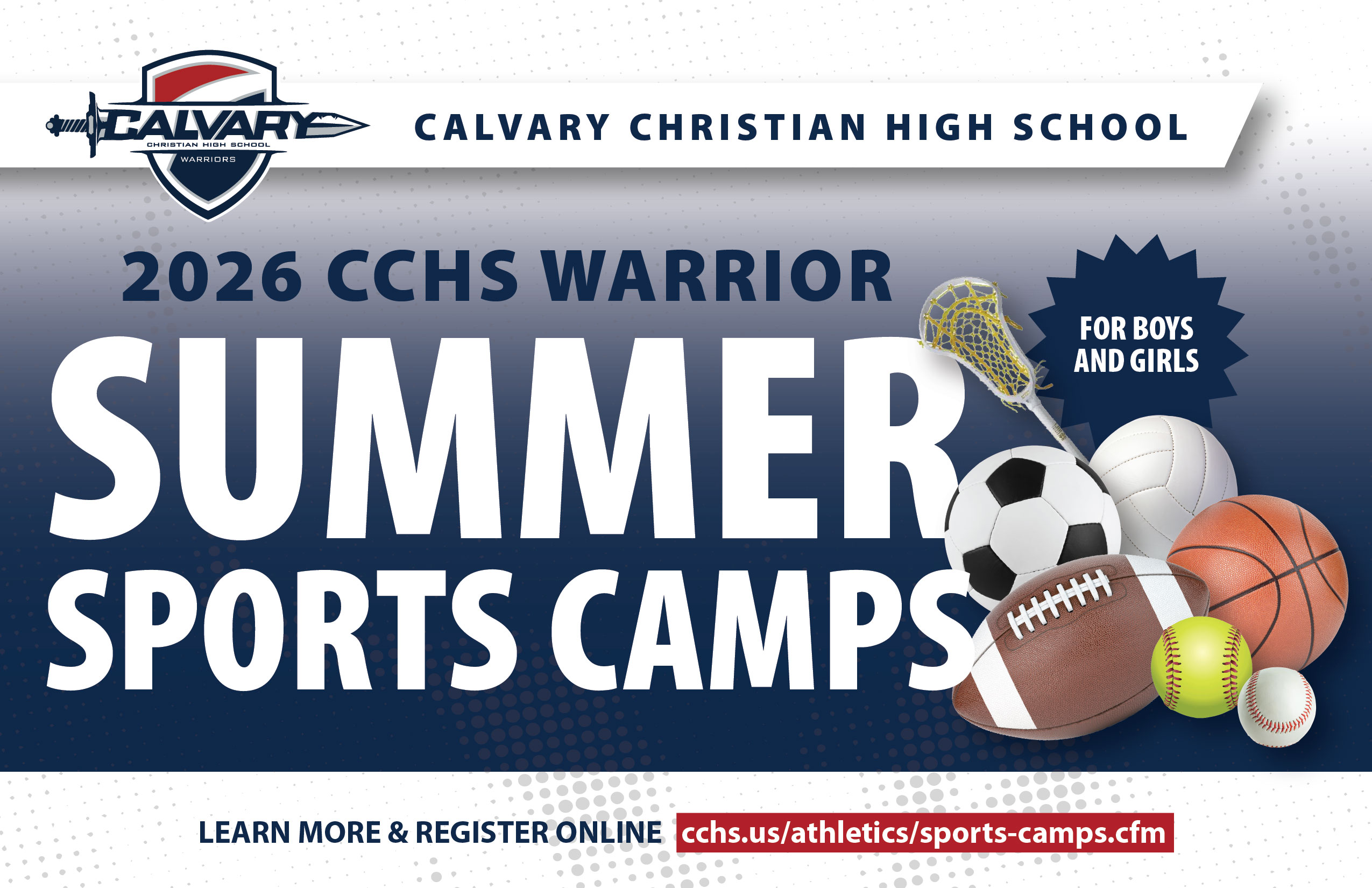 Join Calvary's lacrosse coaches as well as members of the Warrior lacrosse programs for a fun-filled camp teaching the fundamentals of the sport.